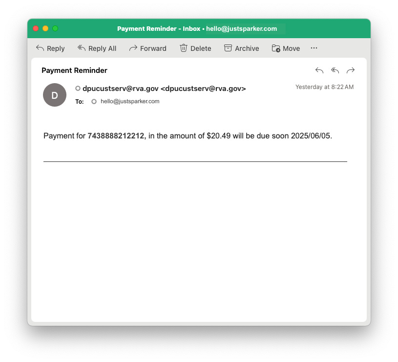 Subject lines should minimize the need to open an email—clear facts, maybe some fun. “😊 Payment due 06/05/25 - $20.49”.